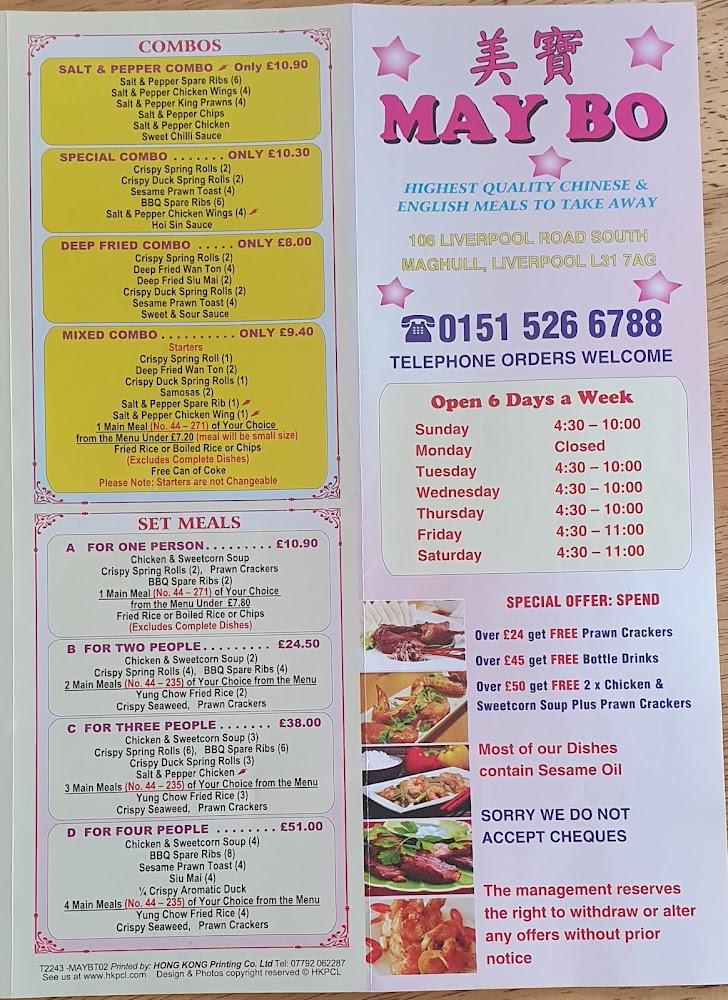 Situated at 106 Liverpool Rd S in Maghull, Liverpool, May Bo Takeaway has become a cornerstone of the local food scene. The bright, welcoming atmosphere invites both new and returning customers to indulge in flavors that evoke the classic takeaway experience. Hidden gems like this are often found off the beaten path, but the buzz surrounding May Bo has created a devoted clientele drawn by the promise of value-for-money meals. The takeaway is easily accessible, featuring plenty of free street parking nearby, making it convenient for those on the go. It enjoys popularity across Maghull and beyond, known for its diverse menu that meets a variety of tastes and preferences. The restaurant's commitment to friendly service consistently shines, contributing to its reputation as a go-to destination for quick, satisfying meals. Additionally, the takeaway has garnered praise for its accommodating nature, handling dietary needs with care, especially for vegetarians concerned about cross-contamination.